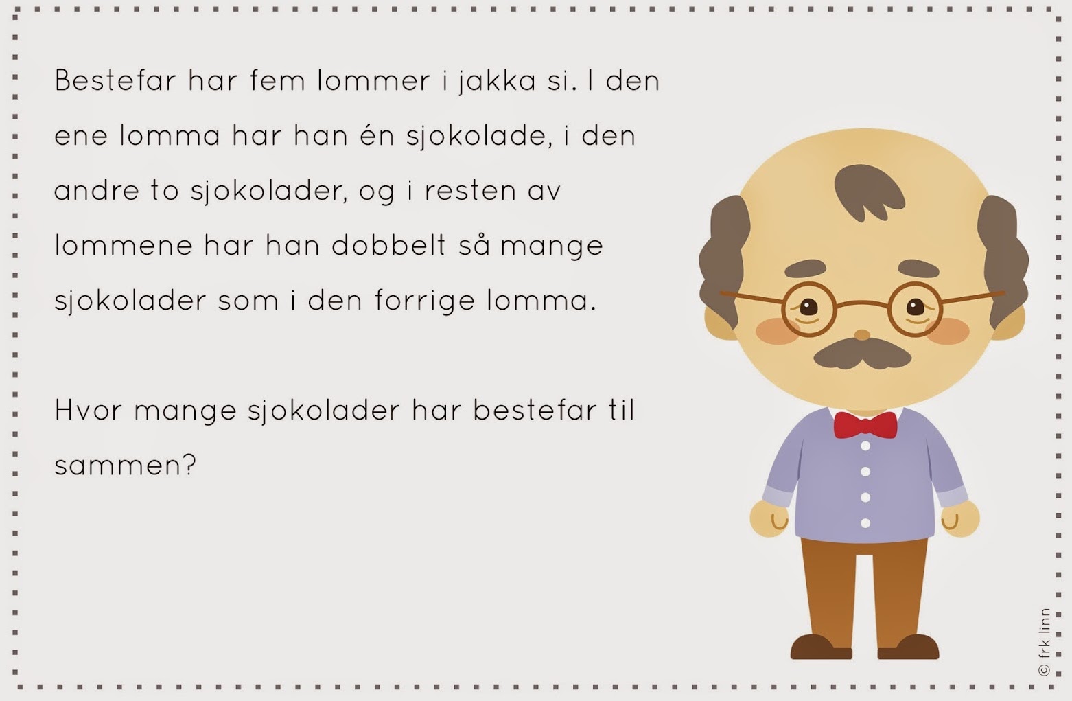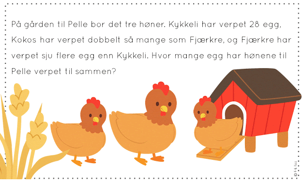 Her kommer dagens grublis. Bruk et ark når du løser den. Vis hvordan du kommer fram til løsningen. Ta gjerne bilde av løsningen og send til læreren din på mail.