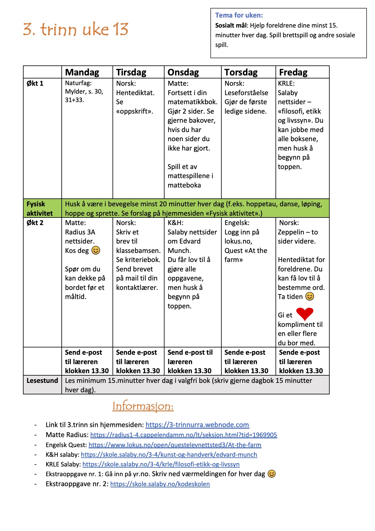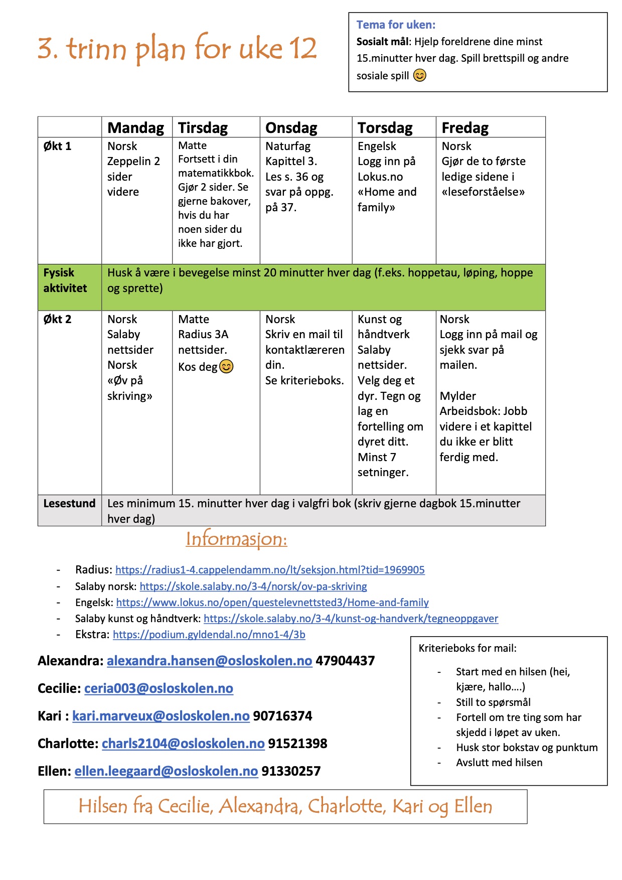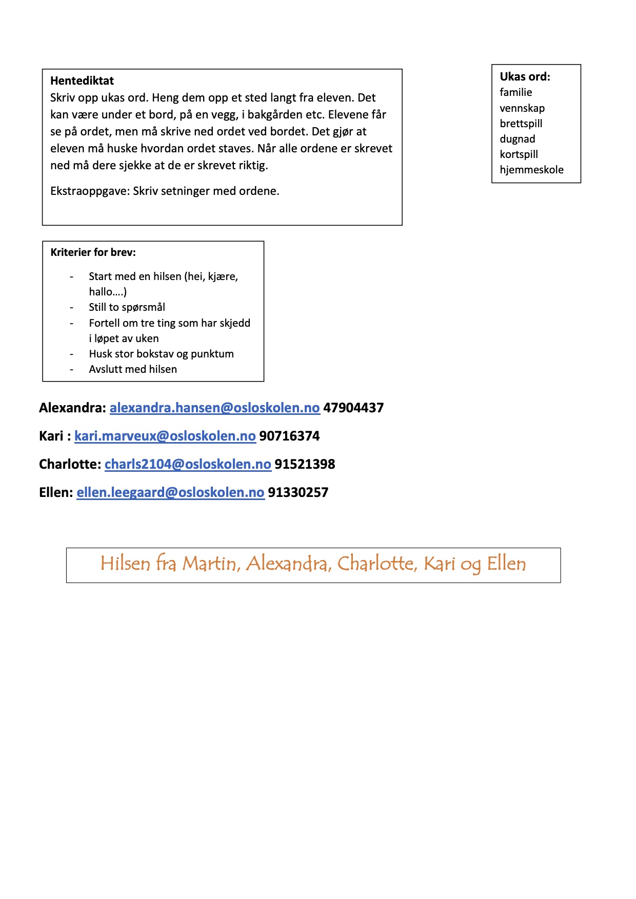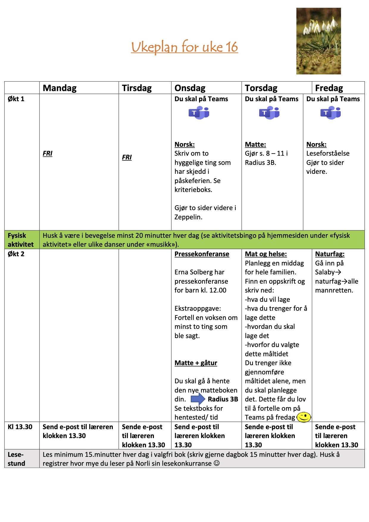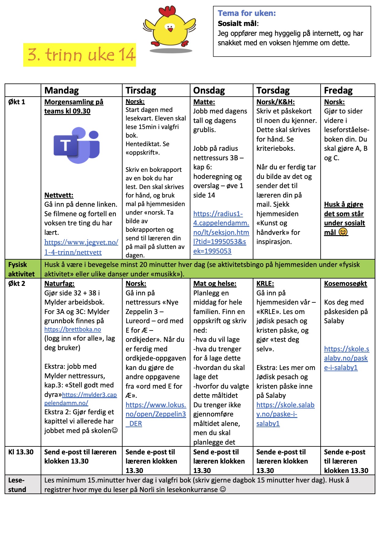 Over ukeplanen ligger ukeplanen i pdf som du kan laste ned. Hvis du laster ned denne kan du trykke direkte på linkene i ukeplana :-)
